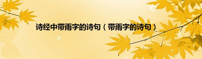 以上就是【诗经中带雨字的诗句,带雨字的诗句】相关内容。