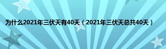 大家好,为什么2021年三伏天有40天,2021年三伏天总共40天很多人还不知道,现在让我们一起来看看吧!