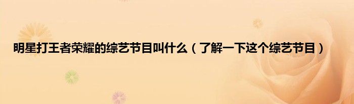 本文,明星打王者荣耀的综艺节目叫什么,了解一下这个综艺节目到此就分享完毕,希望对大家有所帮助。