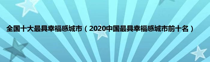 大家好,全国十大最具幸福感城市,2020中国最具幸福感城市前十名很多人还不知道,现在让我们一起来看看吧!