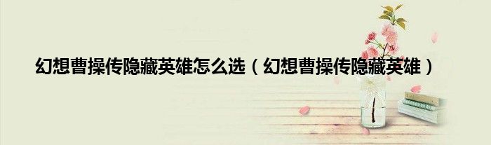 以上就是【幻想曹操传隐藏英雄怎么选,幻想曹操传隐藏英雄】相关内容。