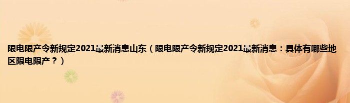 本文,限电限产令新规定2021最新消息山东,限电限产令新规定2021最新消息:具体有哪些地区限电限产?到此就分享完毕,希望对大家有所帮助。
