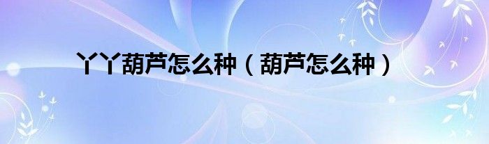 以上就是【丫丫葫芦怎么种,葫芦怎么种】相关内容。