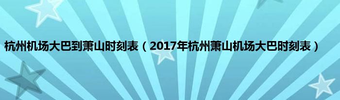 大家好,杭州机场大巴到萧山时刻表,2017年杭州萧山机场大巴时刻表很多人还不知道,现在让我们一起来看看吧!