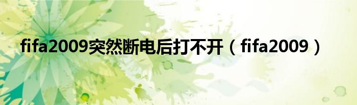 大家好,小问来为大家解答以上问题。fifa2009突然断电后打不开,fifa2009这个很多人还不知道,现在让我们一起来看看吧!