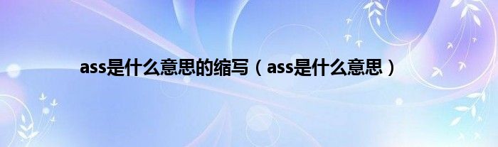 以上就是【ass是什么意思的缩写,ass是什么意思】相关内容。