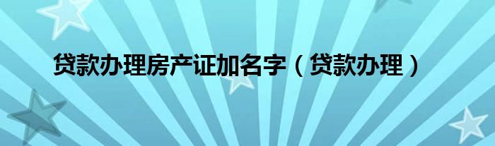 以上就是【贷款办理房产证加名字,贷款办理】相关内容。