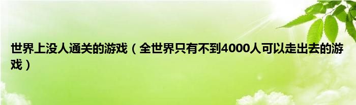 世界上没人通关的游戏(全世界只有不到4000人可以走出去的游戏)
