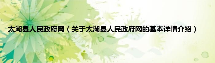 本文关于太湖县人民政府网的基本详情介绍就讲解完毕,希望对大家有所帮助。