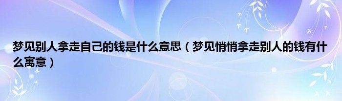 大家好,综合小编来为大家讲解下。梦见别人拿走自己的钱是什么意思,梦见悄悄拿走别人的钱有什么寓意这个很多人还不知道,现在让我们一起来看看吧!