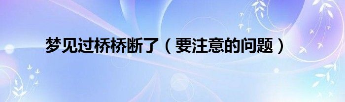本文梦见过桥桥断了,要注意的问题到此分享完毕,希望对大家有所帮助。