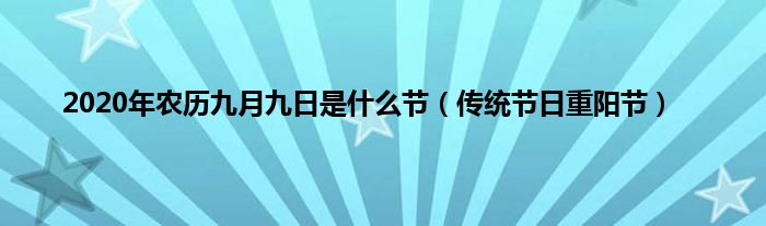 一、2020年农历九月九日是什么节:我国传统节日二、重阳节三、,也是敬老节: 农历九月初九是重阳节。重阳节,又称“踏秋”,汉族传统节日。庆祝重阳节一般包括出游赏景、登高远眺、观赏菊花、遍插茱萸、吃重阳糕、饮菊花酒等活动。