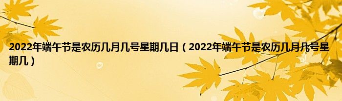 大家好,综合小编来为大家讲解下。2022年端午节是农历几月几号星期几日,2022年端午节是农历几月几号星期几这个很多人还不知道,现在让我们一起来看看吧!