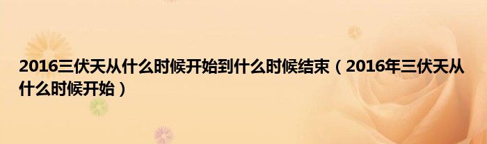 大家好,综合小编来为大家讲解下。2016三伏天从什么时候开始到什么时候结束,2016年三伏天从什么时候开始这个很多人还不知道,现在让我们一起来看看吧!