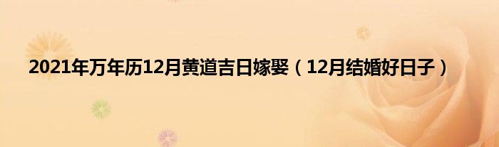 本文2021年万年历12月黄道吉日嫁娶,12月结婚好日子到此分享完毕,希望对大家有所帮助。