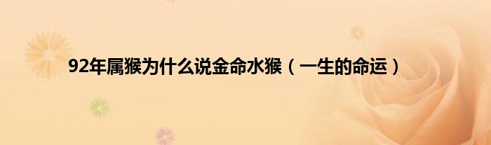 大家好,综合小编来为大家讲解下。92年属猴为什么说金命水猴,一生的命运这个很多人还不知道,现在让我们一起来看看吧!