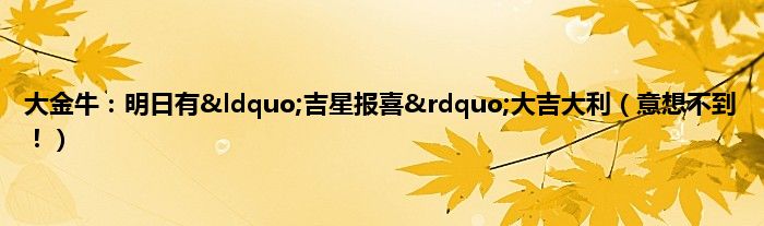 大家好,综合小编来为大家讲解下。大金牛:明日有“吉星报喜”大吉大利,意想不到!这个很多人还不知道,现在让我们一起来看看吧!