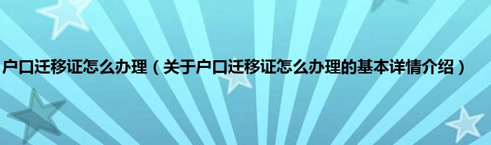 本文关于户口迁移证怎么办理的基本详情介绍就讲解完毕,希望对大家有所帮助。