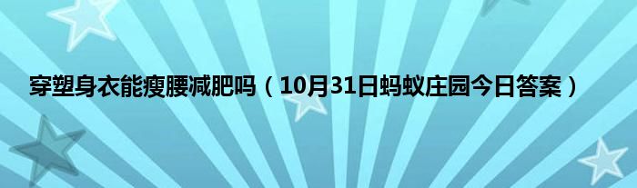 欢迎观看本篇文章,小升来为大家解答以上问题。穿塑身衣能瘦腰减肥吗,10月31日蚂蚁庄园今日答案很多人还不知道,现在让我们一起来看看吧!