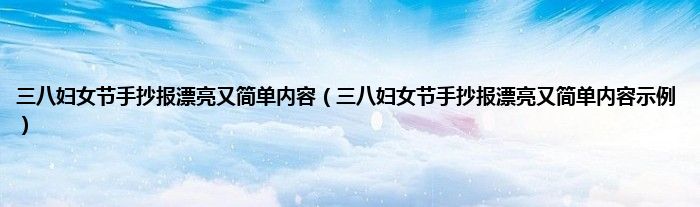 欢迎观看本篇文章,小升来为大家解答以上问题。三八妇女节手抄报漂亮又简单内容,三八妇女节手抄报漂亮又简单内容示例很多人还不知道,现在让我们一起来看看吧!