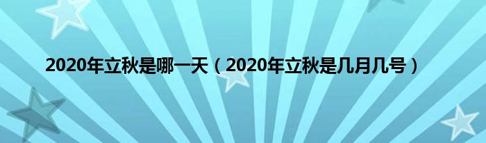 欢迎观看本篇文章,小升来为大家解答以上问题。2020年立秋是哪一天,2020年立秋是几月几号很多人还不知道,现在让我们一起来看看吧!