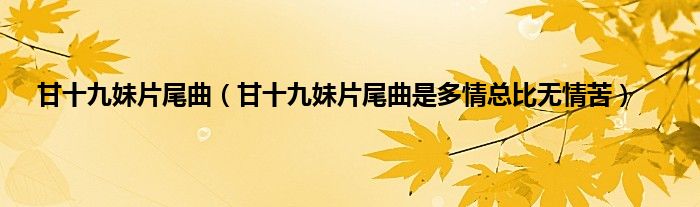 欢迎观看本篇文章,小升来为大家解答以上问题。甘十九妹片尾曲,甘十九妹片尾曲是多情总比无情苦很多人还不知道,现在让我们一起来看看吧!