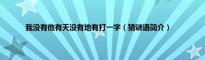 欢迎观看本篇文章,小升来为大家解答以上问题。我没有他有天没有地有打一字,猜谜语简介很多人还不知道,现在让我们一起来看看吧!
