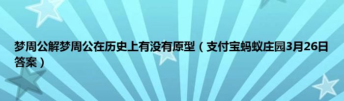 大家好,综合小编来为大家讲解下梦周公解梦周公在历史上有没有原型,支付宝蚂蚁庄园3月26日答案这个很多人还不知道,现在让我们一起来看看吧!