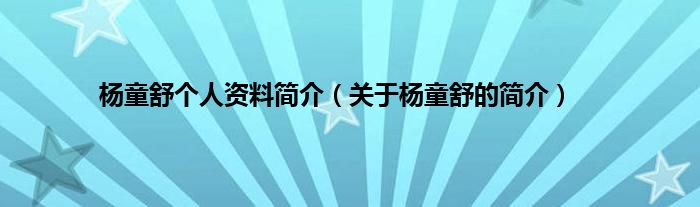 欢迎观看本篇文章,小升来为大家解答以上问题。杨童舒个人资料简介,关于杨童舒的简介很多人还不知道,现在让我们一起来看看吧!