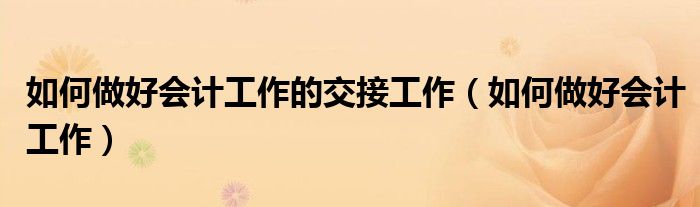 关于如何做好会计工作的交接工作,如何做好会计工作这个很多人还不知道,今天菲菲来为大家解答以上的问题,现在让我们一起来看看吧!