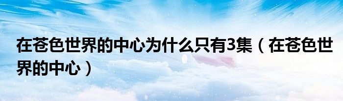 关于在苍色世界的中心为什么只有3集,在苍色世界的中心这个很多人还不知道,今天菲菲来为大家解答以上的问题,现在让我们一起来看看吧!