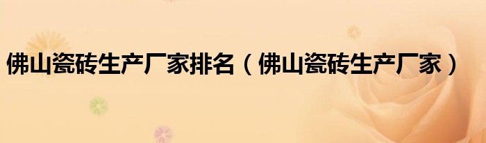 佛山瓷砖生产厂家排名(佛山瓷砖生产厂家)