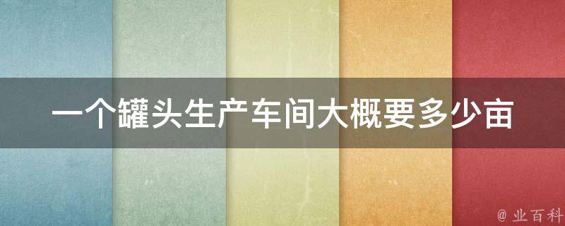 根据情况而定。罐头生产车间的面积通常会根据生产线、储存区、包装区、办公区等需求来规划。一般来说,罐头生产车间的面积可能从几百平方米到几千平方米不等。较小规模的罐头生产车间可能只需要几百平方米,而大型罐头生产工厂则可能需要数千平方米以上的面积。