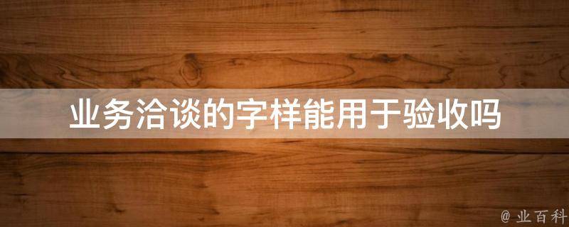 业务洽谈的字样不能用于验收,因为业务洽谈指商务谈判、协商或沟通的过程,而在验收过程中,通常会使用与实际交付的产品、服务或项目相关的术语,例如验收、接收、确认等。如果需要进行验收,建议在相关文档或交流中使用专门用于验收的术语,以确保准确传达验收的目的和意图。