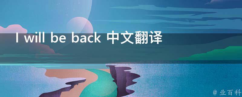 I will be back中文翻译为我会回来的,例句:When you've finished with me,I will be back in the sea again(当你用完我之后,我就会再次回到大海里)。