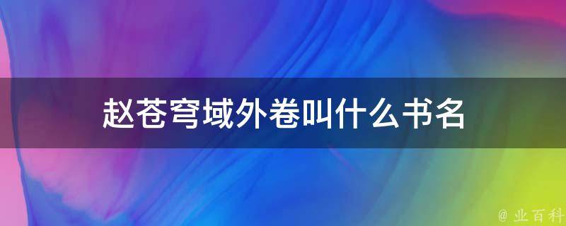 赵苍穹域外卷叫的书名叫《天王帝婿》,男主是赵苍穹,女主是赵娇娇,是作者佚名写的一本都市异能类小说。小说可以在总裁小说网、法策网、六七看书、笔趣阁、雅书阁等平台进行观看阅读。