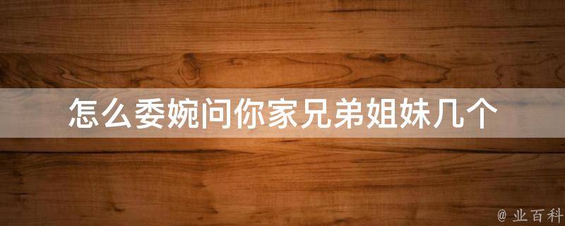 想委婉问别人家兄弟姐妹几个,可以在和寒暄片刻之后,进入到一个比较放松的状态时说:叔叔/阿姨,看您气质这么好,不知道还有没有其他气质一样好的兄弟姐妹呢。如果是同辈可以说:你家里是只有你一个孩子吗?这样可以开始打开话题,也可以巧妙的知道了解她的家庭。
