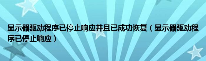今天小饼为大家解答以下问题,关于显示器驱动程序已停止响应并且已成功恢复,显示器驱动程序已停止响应很多人还不知道,现在让我们一起来看看吧!