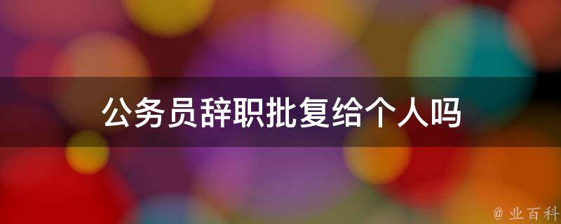 公务员辞职批复给个人。公务员辞去公职批准通知书应当直接送达公务员本人,若直接送达本人有困难,参照有关规定执行。国家公务员,是指在各级政府机关中,符合政策规定,行使国家行政职权,执行国家公务的人员。