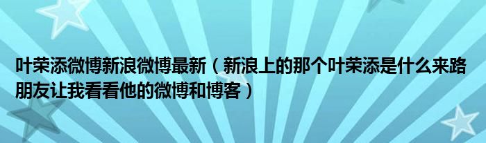 叶荣添微博新浪微博最新(新浪上的那个叶荣添是什么来路 朋友让我看看他的微博和博客)