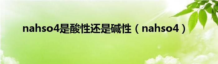 大家好,我是小科,我来为大家解答以上问题。nahso4是酸性还是碱性,nahso4很多人还不知道,现在让我们一起来看看吧!
