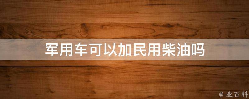 军用车不可以加民用柴油。民用柴油和军用柴油相差悬殊,而且这些提炼技术都是对外保密的。军用车辆无论用途,绝大多数都是使用柴油发动机,而且不仅仅是国内,全世界很多国家军用车辆,几乎都是使用的柴油发动机。这是因为军车行驶的环境很复杂,大部分都不是平整的大路上,经常在山区、泥地、沙漠戈壁这些地方行驶。军车需要的就是通过性强、扭矩大的特性,而柴油就能满足这一点。