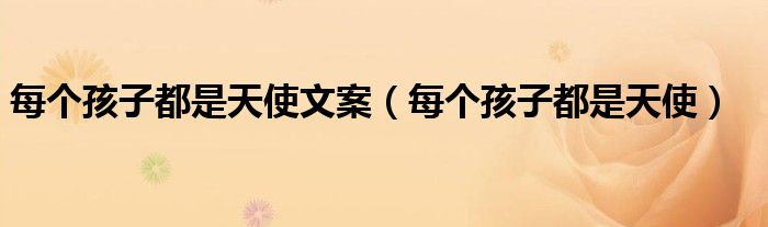大家好,我是小科,我来为大家解答以上问题。每个孩子都是天使文案,每个孩子都是天使很多人还不知道,现在让我们一起来看看吧!
