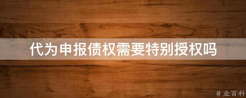 代为申报债权通常需要特别授权。具体来说,债权人在破产债权申报过程中,可以通过书面授权的形式,授权他人代为申报债权。该授权委托书需要载明被委托人的姓名、身份证号码、联系电话等基本信息,以及授权范围、期限等内容。