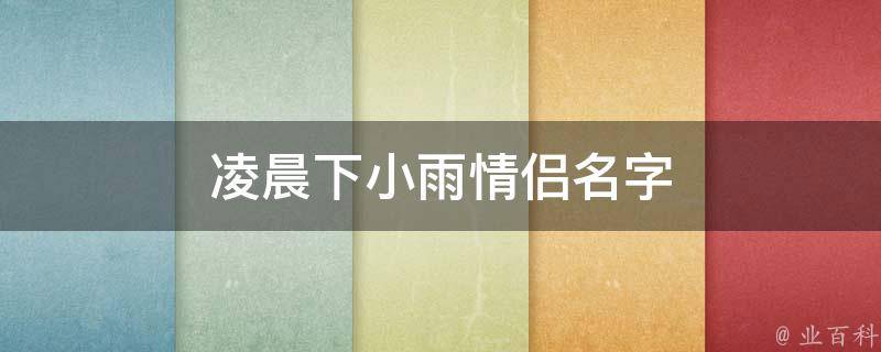 凌晨下小雨的情侣名字是晨烟暮雨,晨烟暮雨的暮是思念的意思,说明思念这雨,和凌晨下小雨是一对情侣名。情侣网名是QQ网名中最为火爆的网名之一,QQ情侣网名是网络中2人相互定位的暧昧称呼。QQ情侣网名受到了90后非主流情侣的青睐。