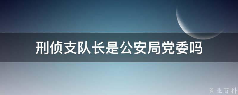 刑侦支队长是公安局党委。刑警支队是地级市级别的公安局中直接下属的负责刑事案件侦破的专门部门,支队长的警衔一般为一级警督或二级警督,即两杠三星或两杠两星,顶头上司是地市级公安局中分管刑侦的副局长。