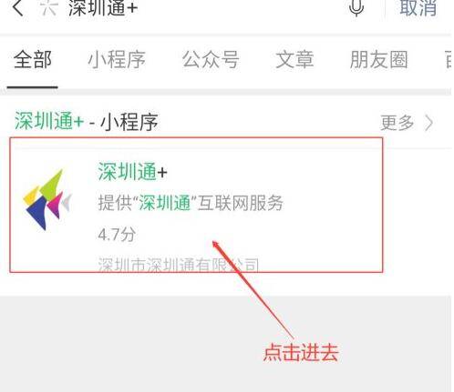 用手机打开微信,搜索“深圳通+”;