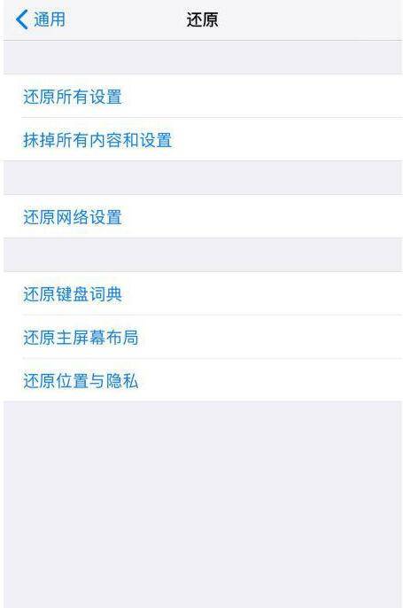 在通用的最下方有“还原所有设置”,进入选择