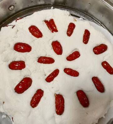 用料:糯米面2500g、凉水适量、金丝枣。