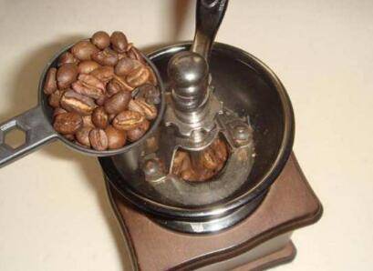 1、取适量咖啡豆,放入研磨机中磨成咖啡粉。